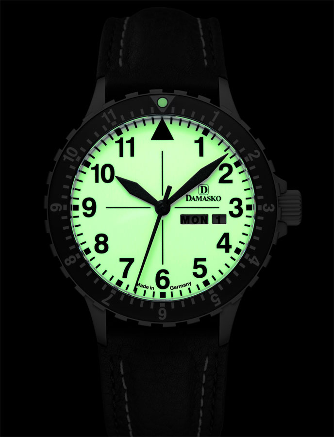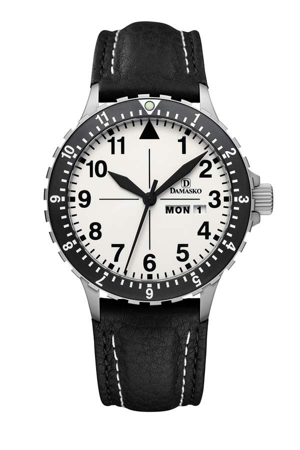 An innovative material and functional equipment prove the new DK4X models with DAMASKO manufacture caliber. The built-in movement A26-3 with silicon escape wheel has a power reserve of 42 hours and displays the full hour, minute and, as well as the center second and date and weekday indication at 3 o'clock. The completely through hardened case, case back and crown are made of ice-hardened stainless steel. The clear optics of the dial and the special hand shape allow optimal readability even under poor external conditions.
